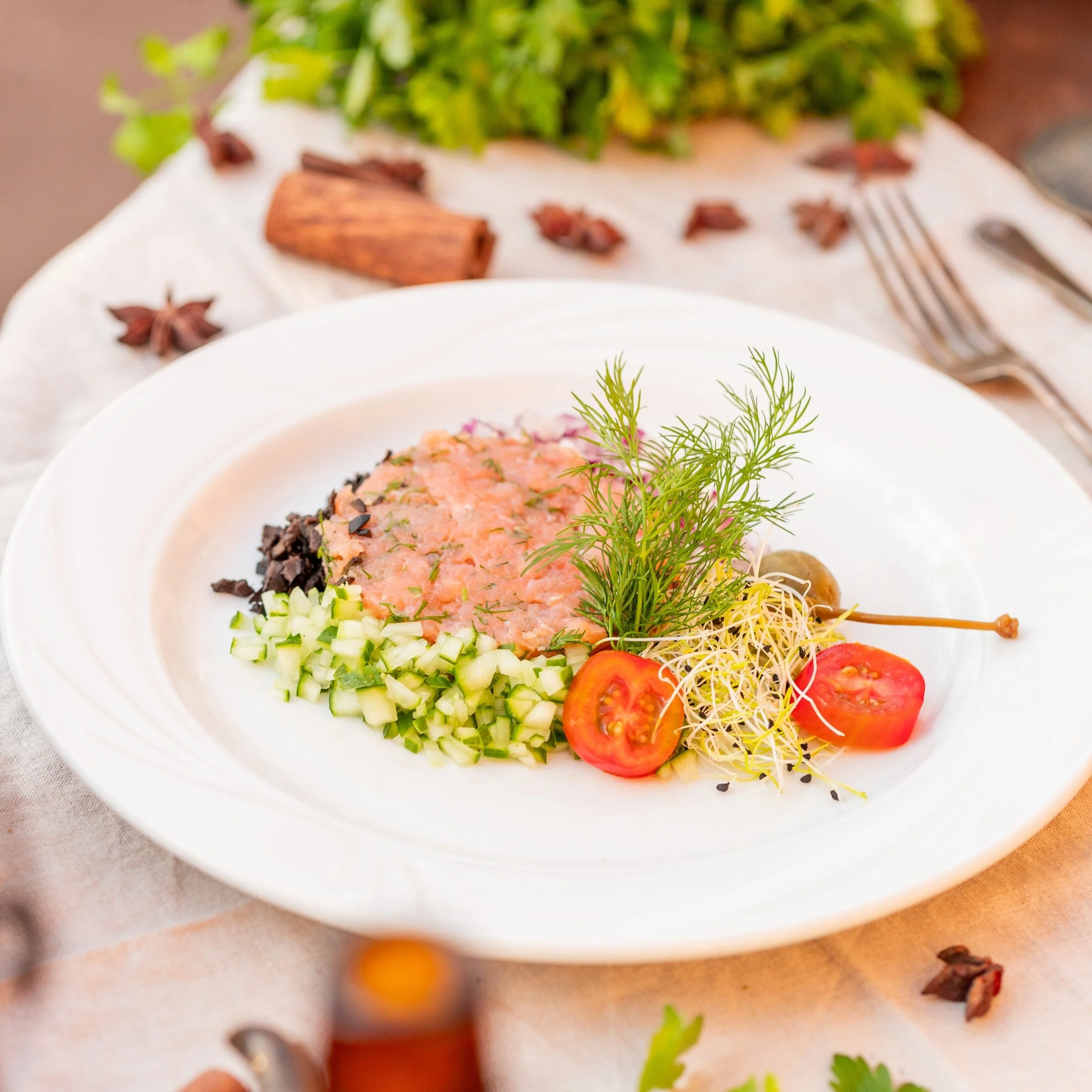 Тартар з яловичини, тартар з копченого лосося, галицький салат, єврейська ікра
